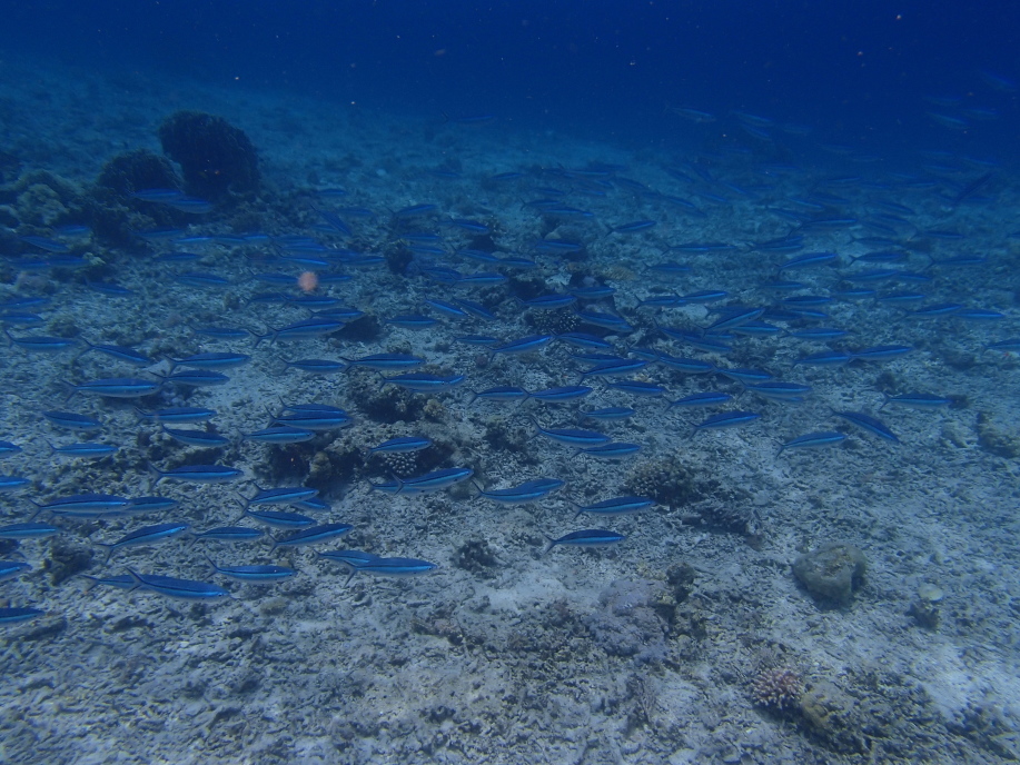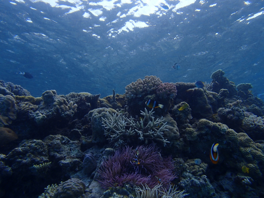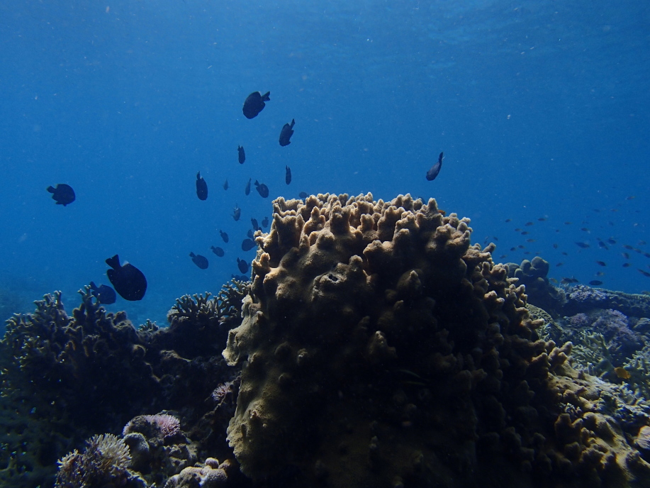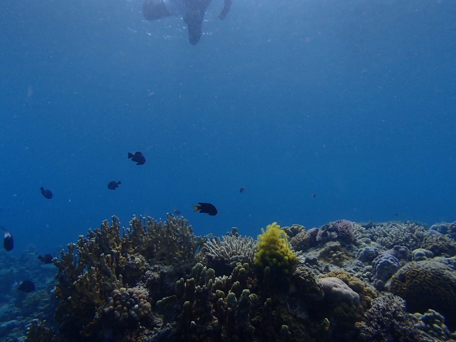 少し濁ってはいましたが、潜って写真を撮ると透明度は全く判らないと思います。