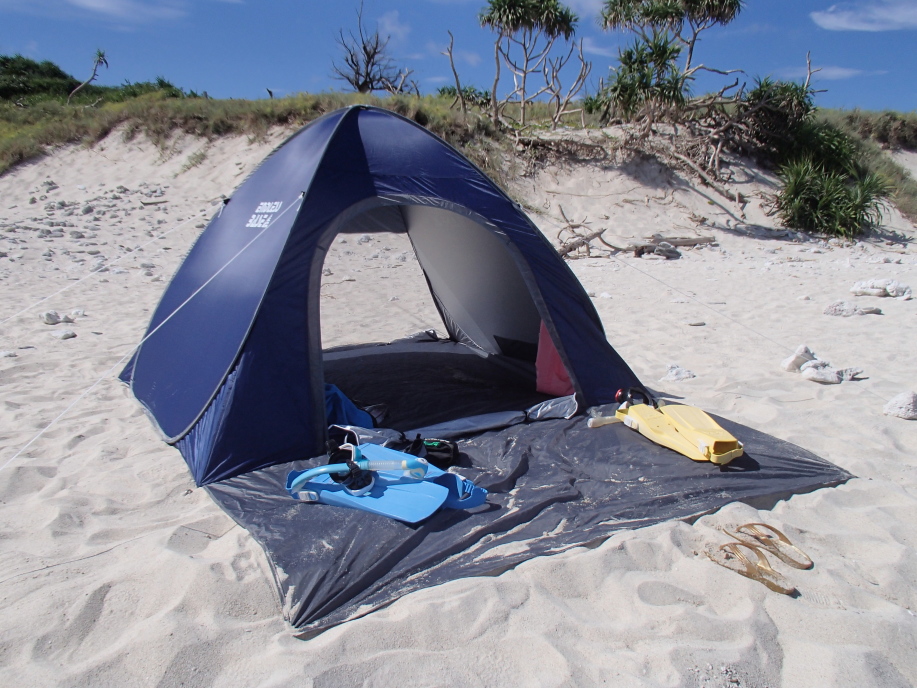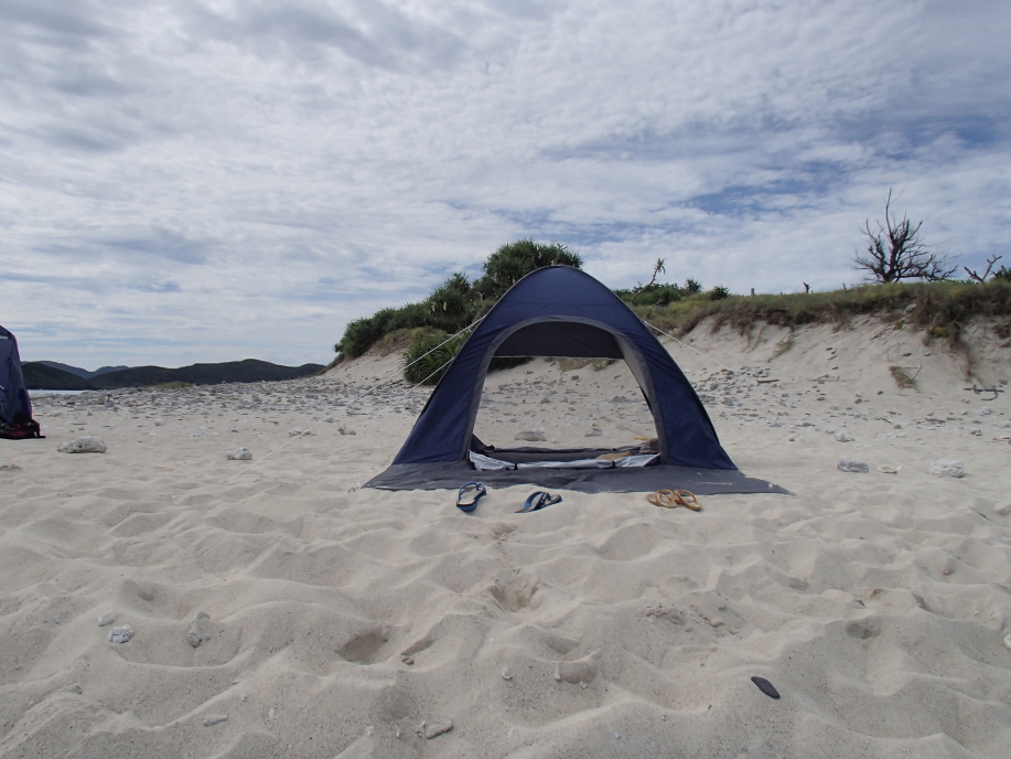 昨日の砂がテントに張り付いてましたが、設置は完了しました。