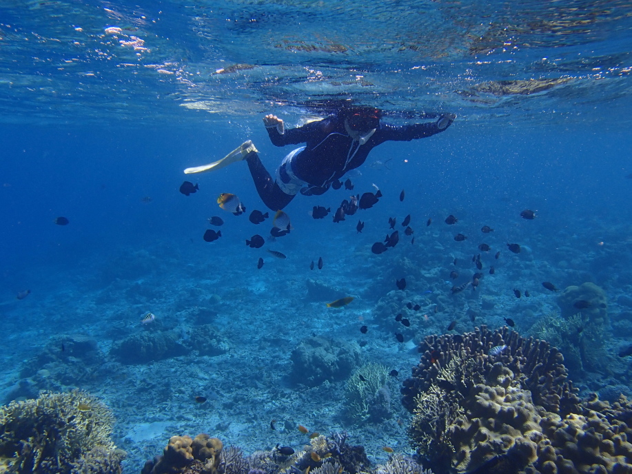すぐさま海に入ると、あまりの水のぬるさにびっくりしました。
