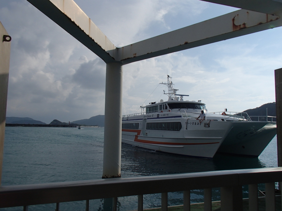 今日の迎えは夕方4時にお願いしてたんですが、大分うちの奥さんの体調が悪いようだったので、丁度宮平さんが他のお客さんを迎えに来ているのが見え、私達も一緒に港へ帰る事にしました。