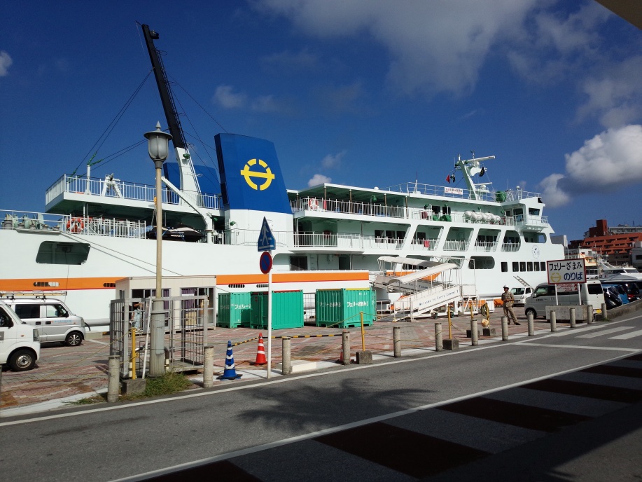 食後、お父さんが「今日のフェリーのチケットを取る為、チケット売り場が行列になってたよ。」と言うのを聞いて、港に見に行ってみました。