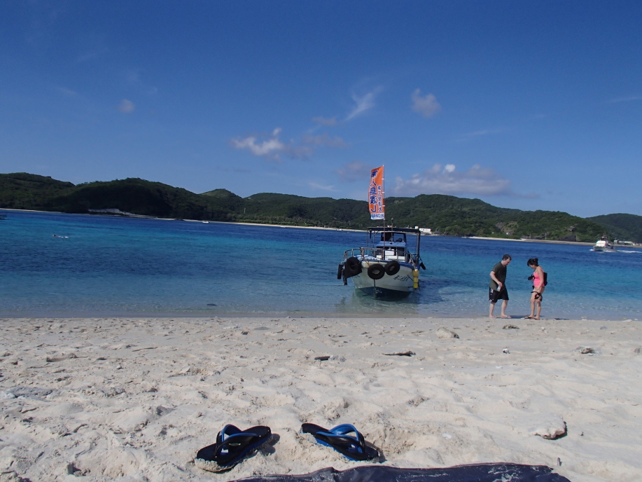 今回、船頭の若いお兄さんに、上潮の時は「安慶名敷島」で引潮の時は「嘉比島」と言うのを聞いたので、来年からは無人島を使い分けようかと思います。