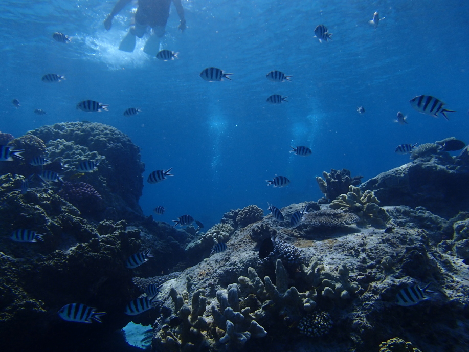 すぐさま海に飛び込むと、あれっ!思った以上に珊瑚が多く、ビックリでした。