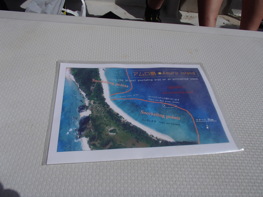 船に乗り込み、今日は「安室島」へ行く事を伝えると同時に「今日は大潮で、安慶名敷島は誰も渡ってません。」との返答となり、他に乗り込んだお客さん達にも「安慶名敷島」は無理なので、「安室島」を進められてました。