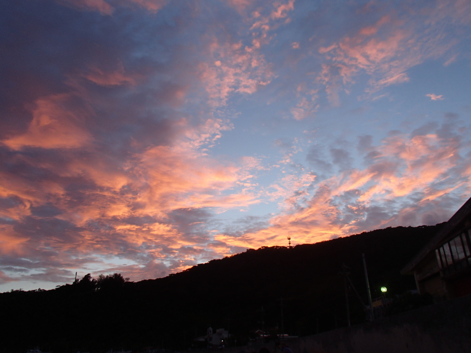 うちの家からも、たまにこんな色した夕日が見えるんですが、「座間味島」だと山と海しかないので、一段と綺麗に見えました。