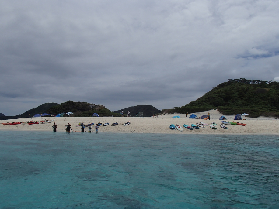 今日は、送迎船以外にもシーカヤックやSAPで上陸する人達がやたら多く、砂浜がボート置き場のようになってました。