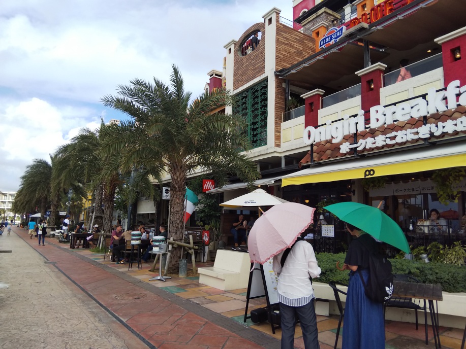 仕方なく諦めて、今日のランチ予定の「タコライスcafe きじむなぁ」まで、雨の中「瀬長島 ウミカジテラス」を登って行きました。