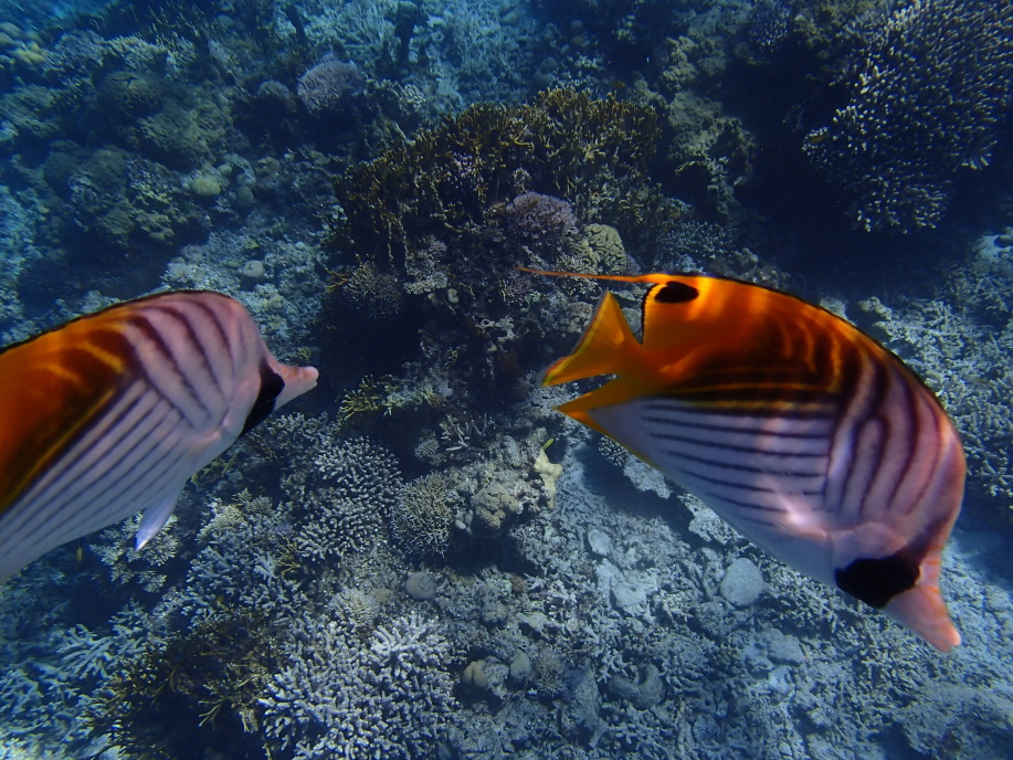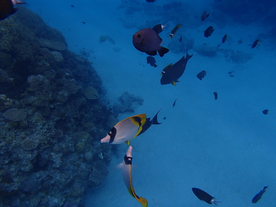 餌を貰えると思ってか「チョウチョウウオ」がよく着いて来ます。
