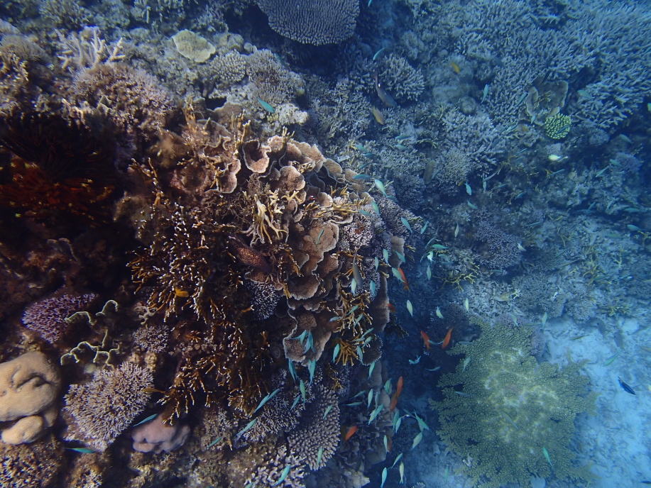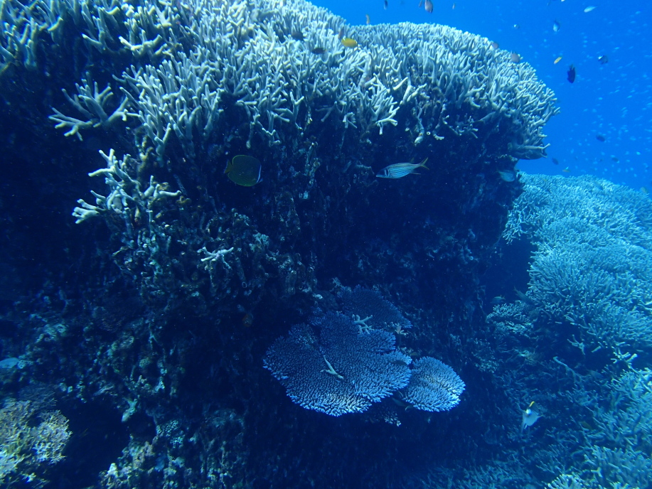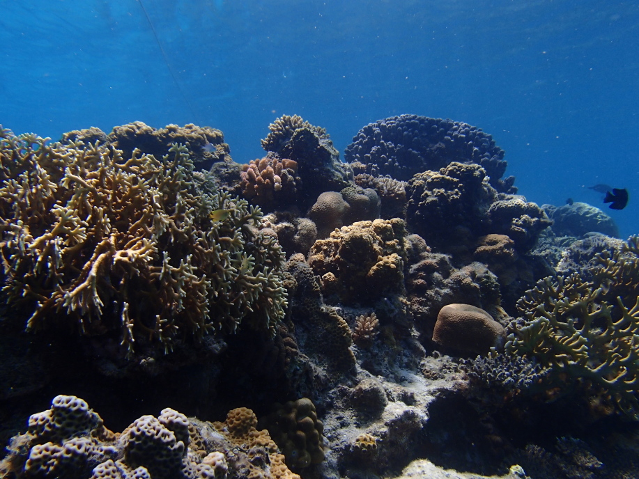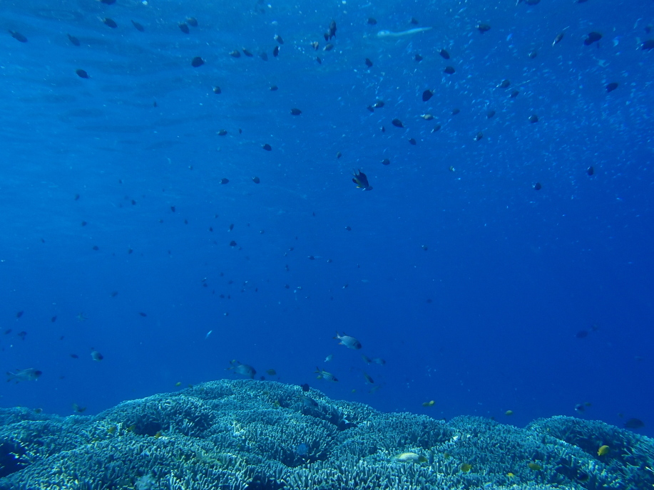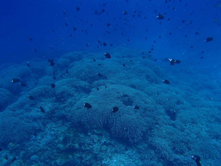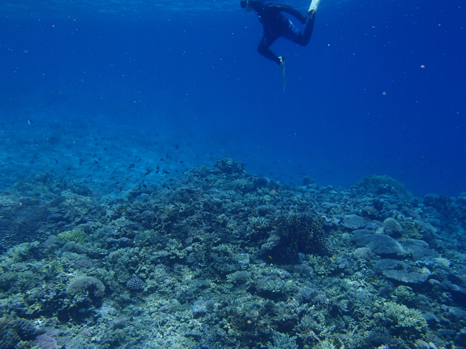 水深自体は浅かったんですが、この珊瑚の群生の位置までは結構深く、潜って見ると大分深さが有り、水面まで戻るのが遠くなってました。