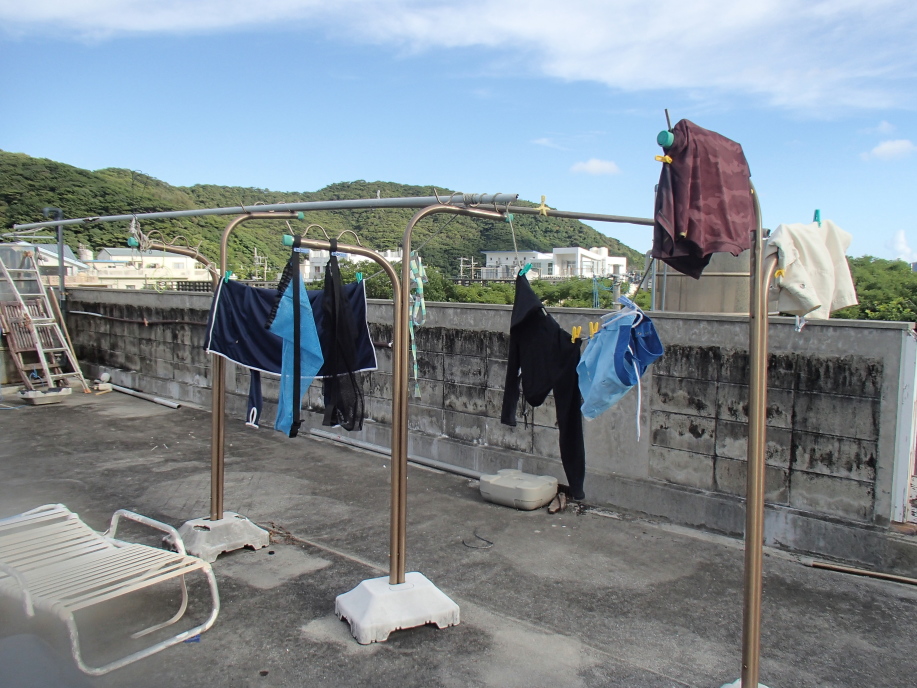 宿に戻ると、干していた水着類もすっかり乾いていたので取り込みました。