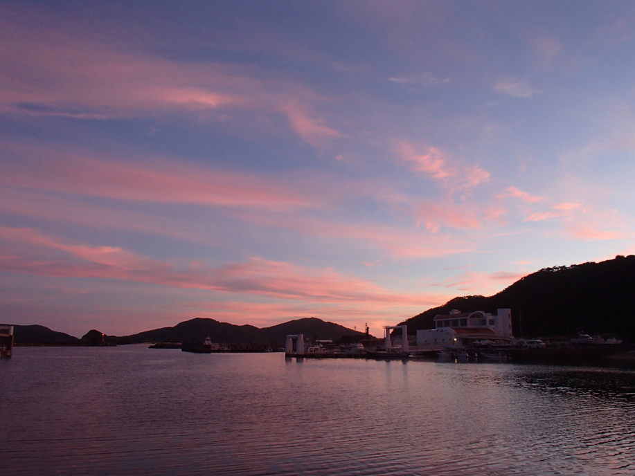 食後の二次会の港へ向かうと、一次会の始まる時間が遅かったので、もう暗くなりかけてました。