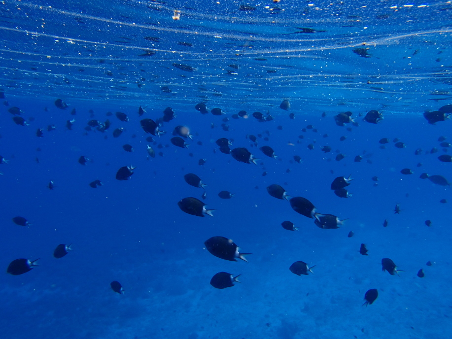 色合いはあまり良く無いんですが、この黒い魚の群れが無限に居ました。