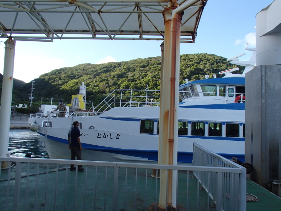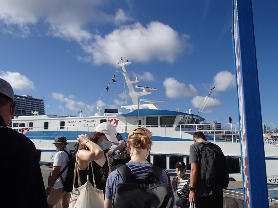 波が高いので、航路も変更して迂回するルートを通って行き、10分遅れで渡嘉敷島に到着しました。