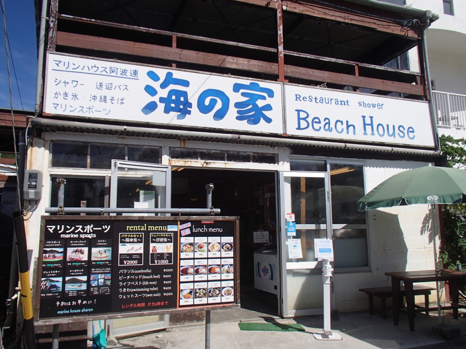私達が「マリンハウス阿波連」の目印の腕輪を付けているのを見て、「マリンハウス阿波連の方は、そちらの受付でどうぞ」と言われたんですが、私が「あっちのオジサンがうるさいんで!」と言うと、こっちの店で受付してくれました。