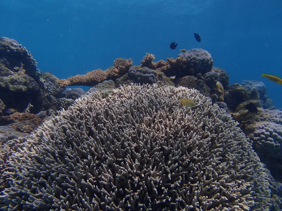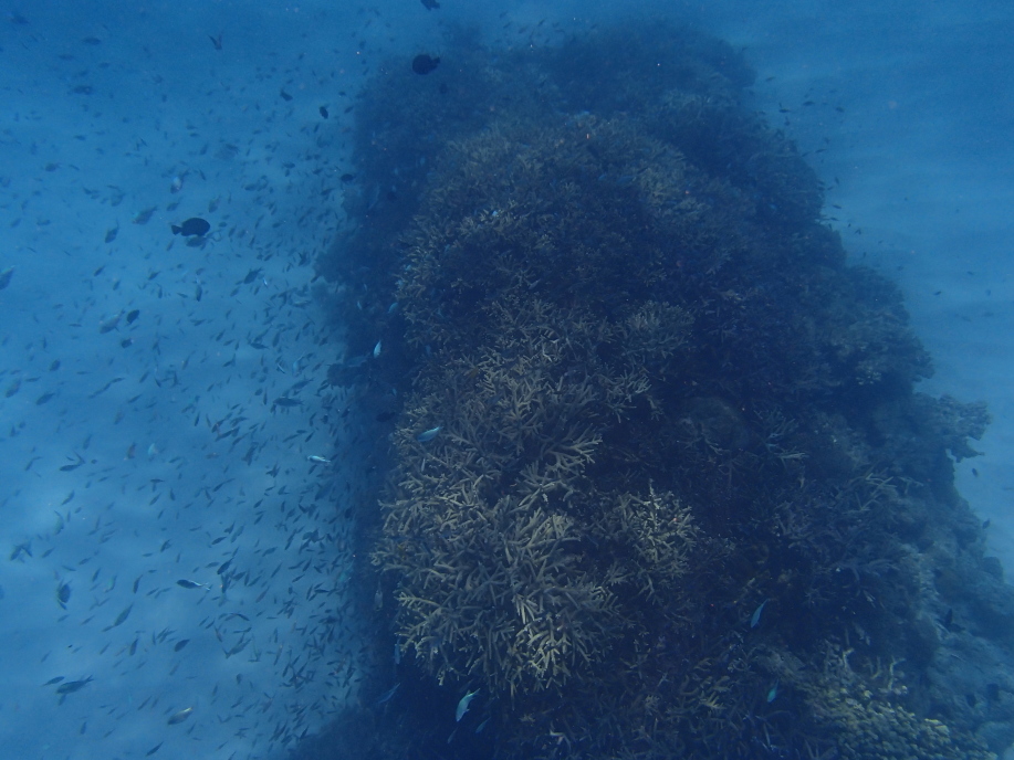 今日2本目は、来る時に沖の方へ行かないように忠告されていたんですが、いつもの珊瑚の群生の場所まで頑張っって泳いで見ました。