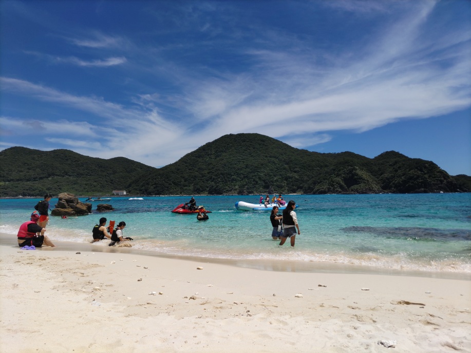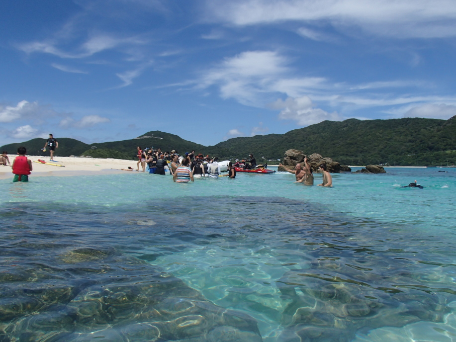 今日は「マリンハウス阿波連」の方は人気が無いようで、私達が頼んだ業者のボートばかり送迎で行き来してました。