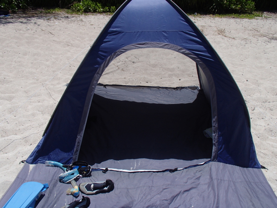 テントに戻って来て、今日の送迎時間は早く、午後2時半だったので、また早々とテントしまい、海に浮かんで待ってました。