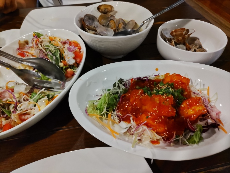 ちょっと値段は高かったんですが、海鮮サラダを頼んで見ると、刺身の量が半端じゃない量乗っかって出て来ました。
