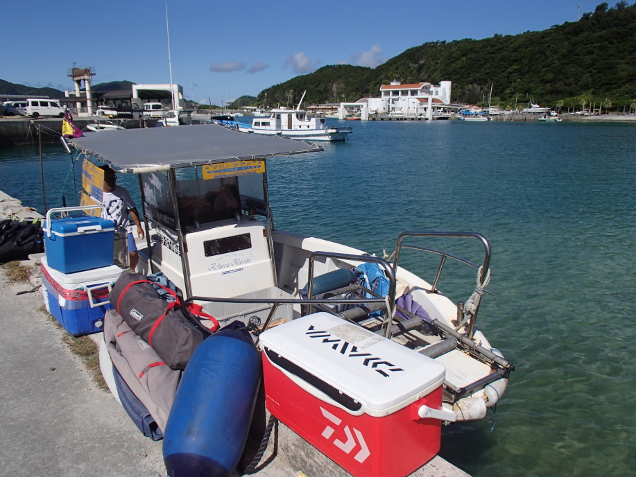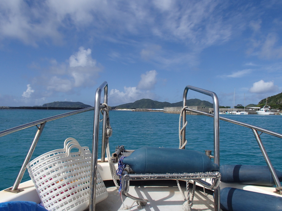 朝9時半の送迎を頼んでいたので港へ向かうと、宮平さんの船が待っていたので、すぐに乗り込みました。