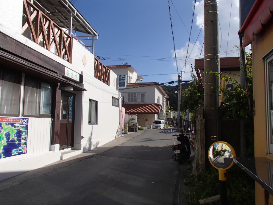 港から宿に向かって歩き出すと、出航しかけてた、渡し船の宮平さんに遭遇し、「明日の送迎ですよねー!」と言われてOKサインを出したんですが、今日も無人島渡しをお願いできるか慌てて大声で聞いて見ると、今日はバタバタしているとの事で、無理そうだったので諦めて、明日の朝の送迎だけお願いしました。