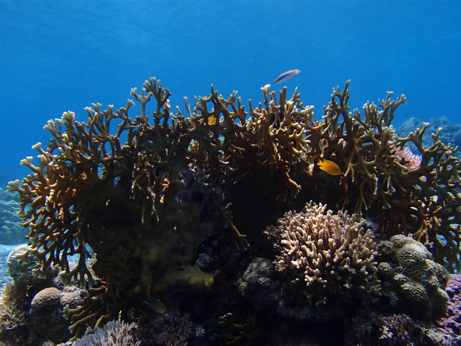 いつもあまり見ない浅瀬の珊瑚も、下の方から撮ると綺麗で良い感じした。