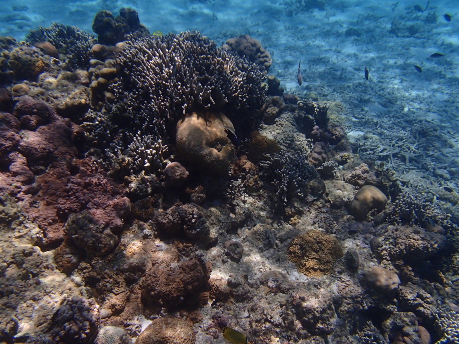 帰る途中に枝珊瑚の残骸らしきものが沈んでいるのは見えたので、もしかすると浅瀬の珊瑚は死滅したのかも知れません。