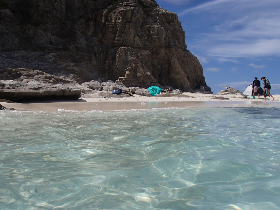 テントを設置して、すぐに海に飛び込みました。