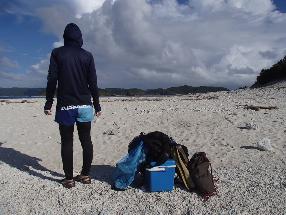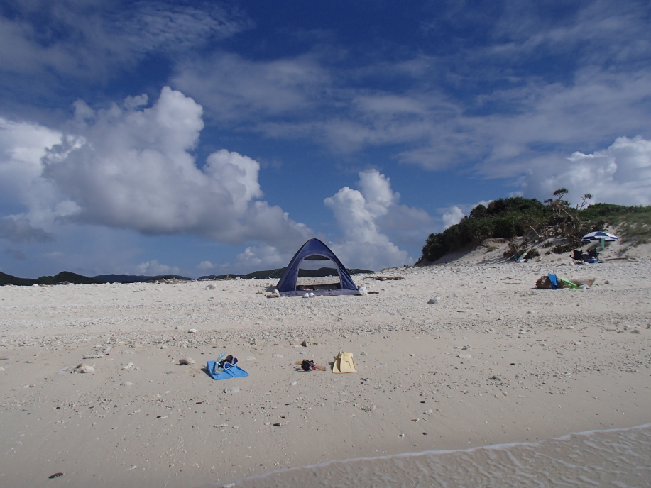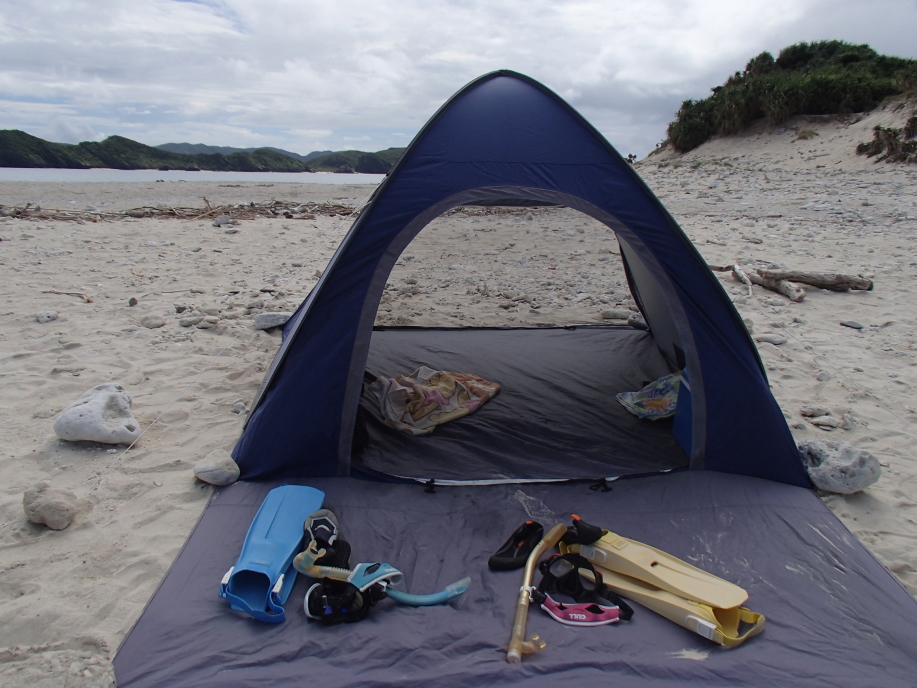 ただ、水に入って見ると、思っていた海流の流れと逆方向だったので、かなり一生懸命泳いで元のテントの場所へ戻る事になりました。