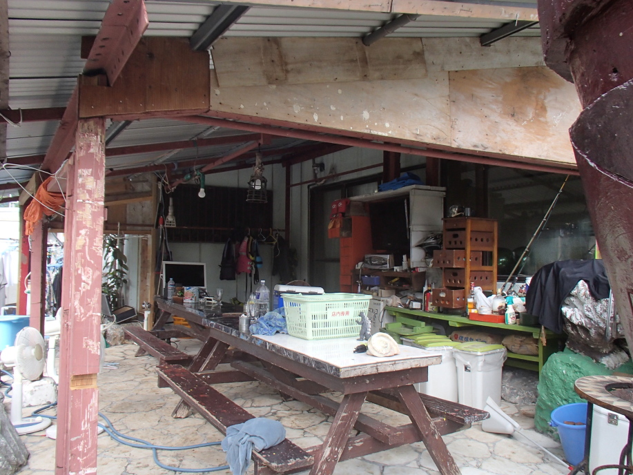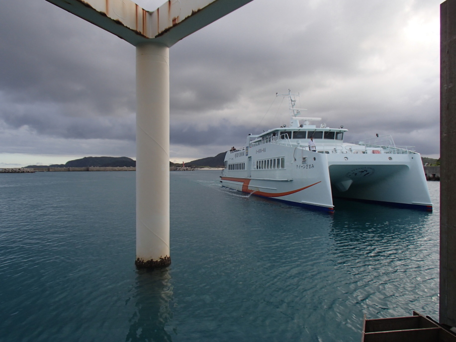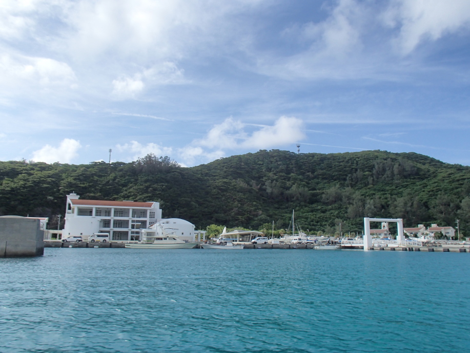 港へ着いて、明日の送迎時間を宮平さんに告げて船を降りたんですが、テントを船で預かってくれるとの事で、船に置いて行きました。