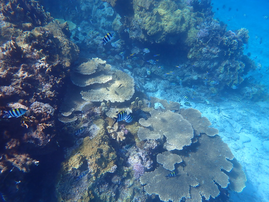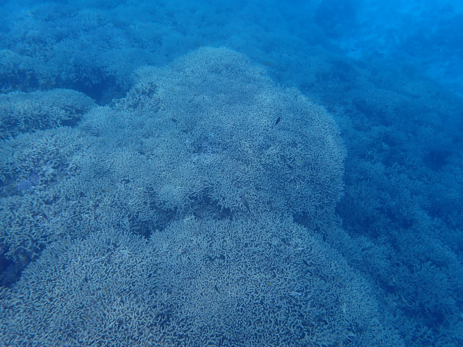 そろそろ帰りの時間も近づいて来たので、沖の方の緑色の珊瑚の群生まで真っすぐ泳いで見て来ました。