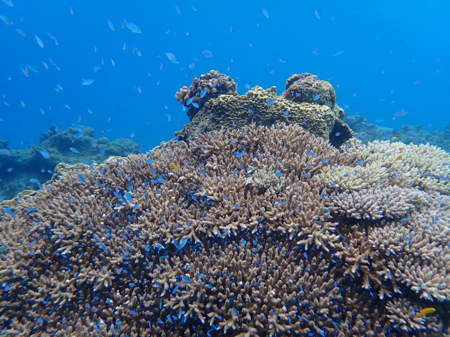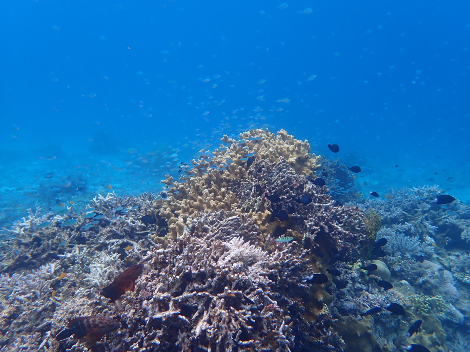まだ透明度も良くて、綺麗なサンゴの群生を見れました。