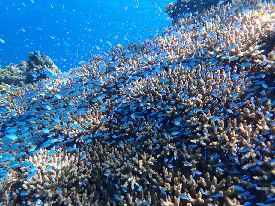 珊瑚の群生も 潜るとさらに綺麗に見れて満足でした。
