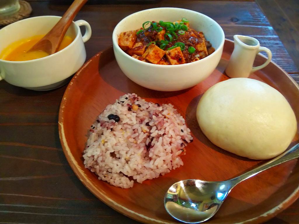 私の頼んだランチは、プレートに「麻婆豆腐」と「ご飯」に「蒸まんじゅう」が乗ってたんですが、注意散漫な私は「蒸まんじゅう」を「肉まん」と思い込んで、最後に食べようと大事にとってました。