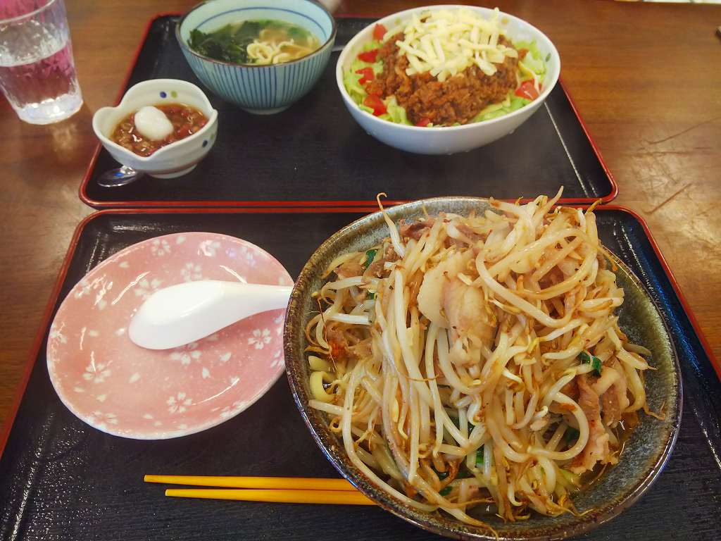 私は「スタミナもやしそば(小)」と、うちの奥さんは「タコライスセット」を頂きました。