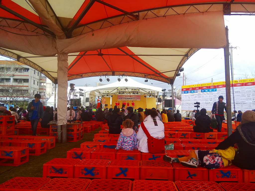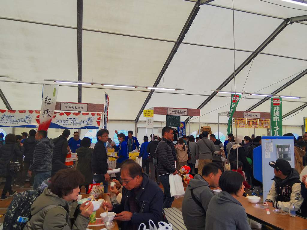 バスの送迎が始まる時間は昼12時からで、「名護漁港」に着いたのが11時頃だった為、まずは腹ごしらえに市街地のお祭り会場で昼ご飯を食べてから戻って来る事にしました。