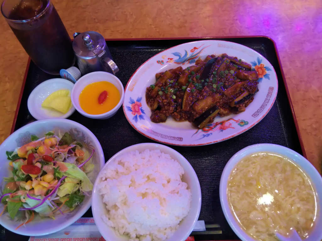 ランチメニューから、私は「白ゴマ担々麺と炒飯セット」、うちの奥さんは「ナスのみそ炒め」を頂きました。