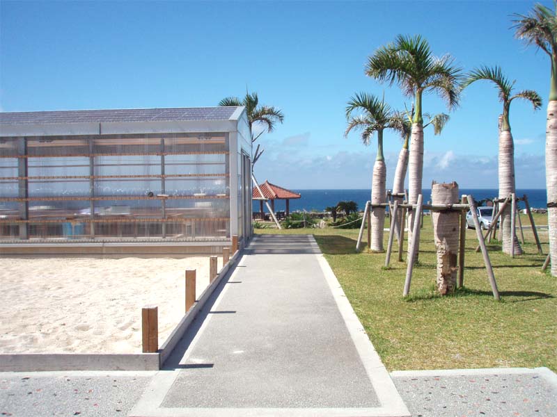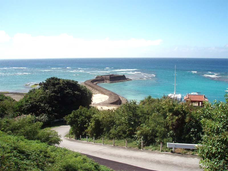 残波岬に行こうと読谷方面の海岸沿いを走っていたら「むら咲むら」の手前の道から急に海岸に出たくなり曲がって見ると、いつも閉まっていた日航アリビラホテルの敷地内に入る門が開いていたので、つい入ってしまいました。