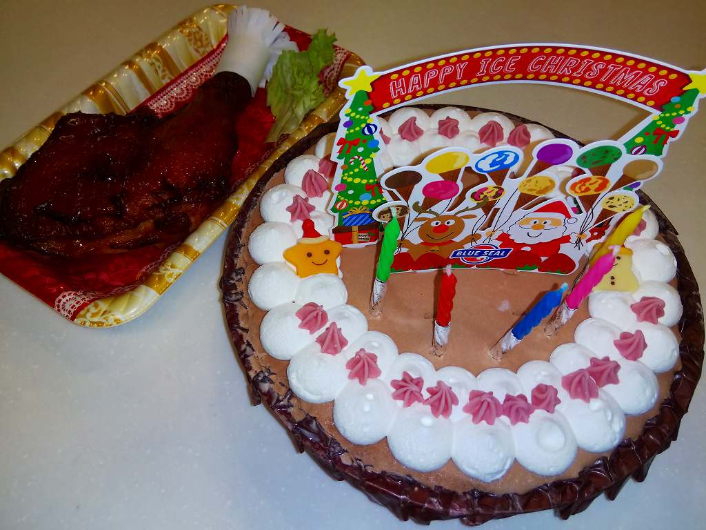 毎年、我が家で恒例になっている「ブルーシール」の「アイスクリスマスケーキ」です。