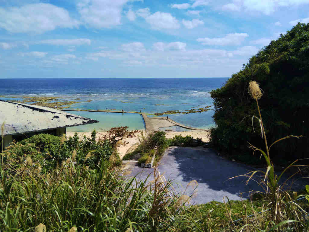 海の前にはレストランだっただろうと思う朽ち果てた建物が残っていて、海も完全にコンクリートで周りをグルっと囲っていて、プールそのものでした。