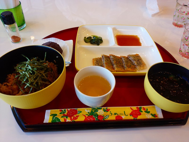 今日のランチは「浜比嘉島」の「サザンホープ浜比嘉」で、名物の「たこ飯」を頂きました。