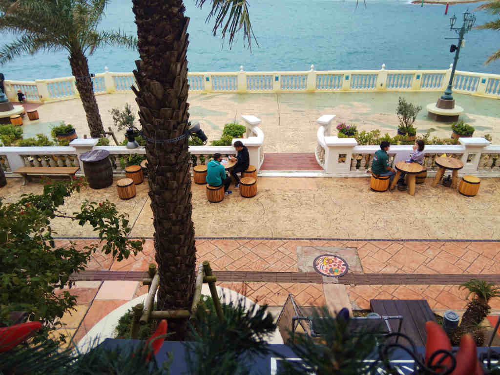 海のすぐ横に流れている川沿いの道が、ヨーロッパ風の歩道に改装されている途中でした。