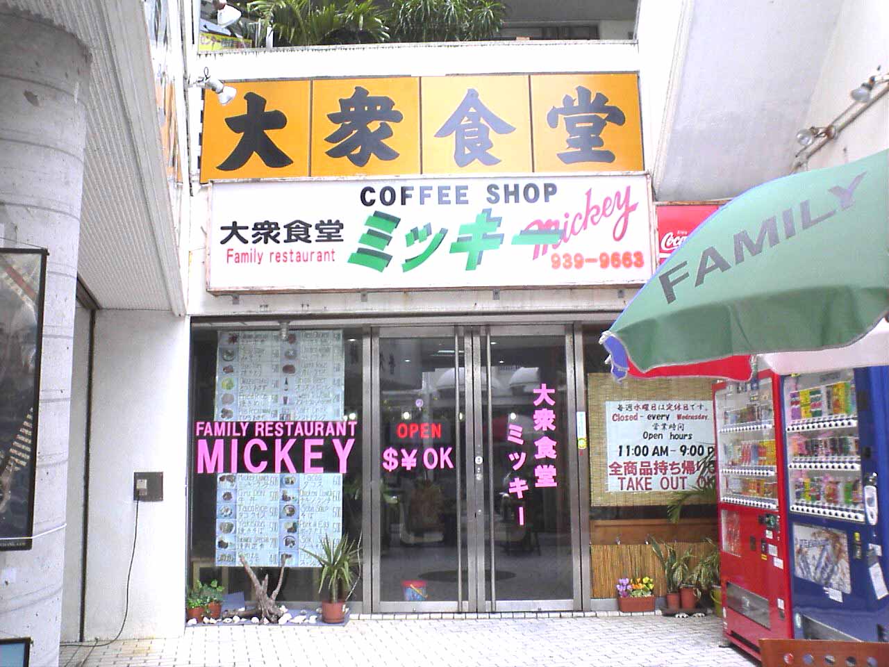 商店街の、はしからはしまで歩いて数件の開いている店の中から「大衆食堂ミッキー」という名前の店に入って見ました。