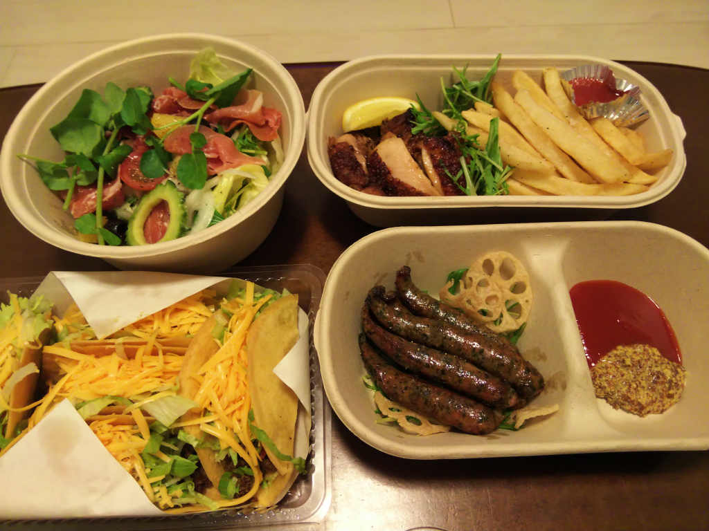 まずは「ジャッキーステーキハウス」でタコスを買って帰り、「マーレ」へ電話して見るとテイクアウトOKとの事で3品程買って、後はスーパーでお酒を少し買って家飲みとなりました。