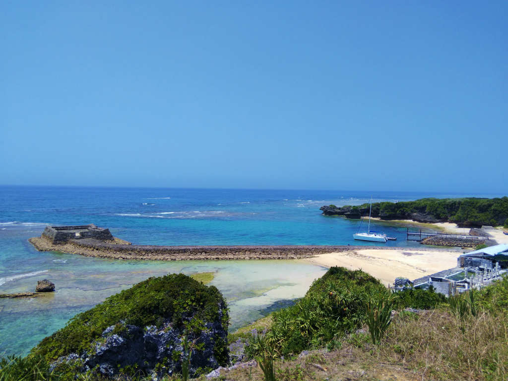 「ホテル日航アリビラ」のちょっと手前にある「Gala青い海」の前の道路沿いで海を眺めながら頂きました。