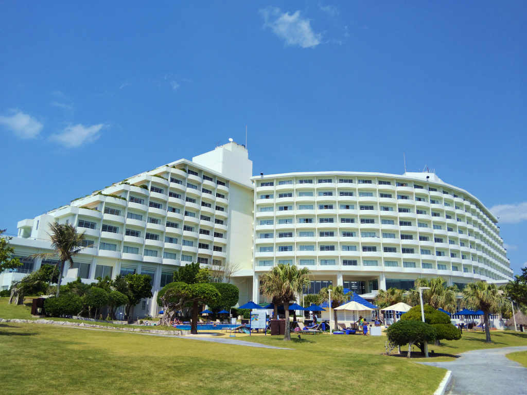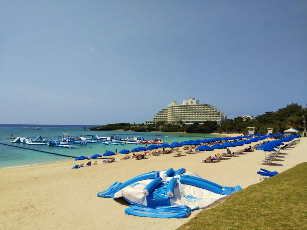 どうしても「ANAインターコンチネンタル万座ビーチリゾート」まで歩きたくなって、砂浜側を通ってチャペルから歩道へ上がる道に入り、ホテル用のビーチを通って何とかホテルまでたどり着きました。