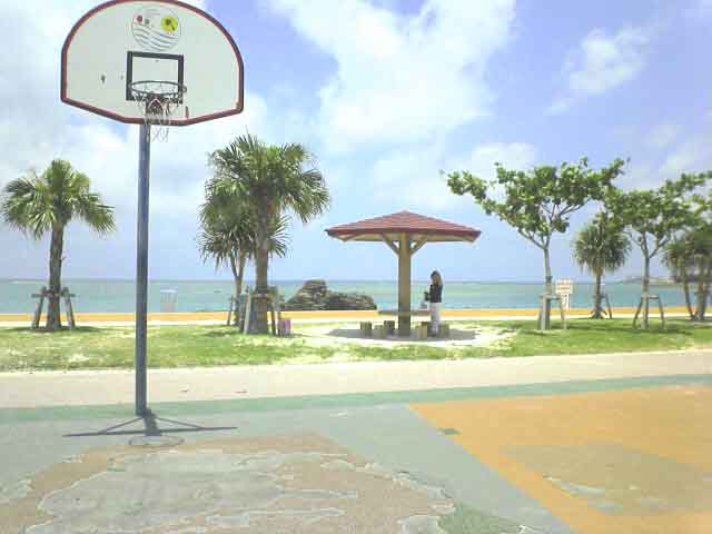 何度か、近くのスーパーで昼食を買って、アラハビーチで食べた事があるんですが、駐車場からビーチまでは10数mぐらいで、その間にバスケットのシュート練習場があって、前回来た時にも、そこで熱心に一人で練習しているカメ仙人似のおじいちゃんが、今日もやってました。