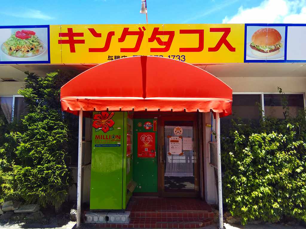 「海中道路」の手前のスーパー「かねひで」でコーラとホットドックを買い、「キングタコス」で「野菜チーズタコライス」と「ナゲット」を買って行きました。