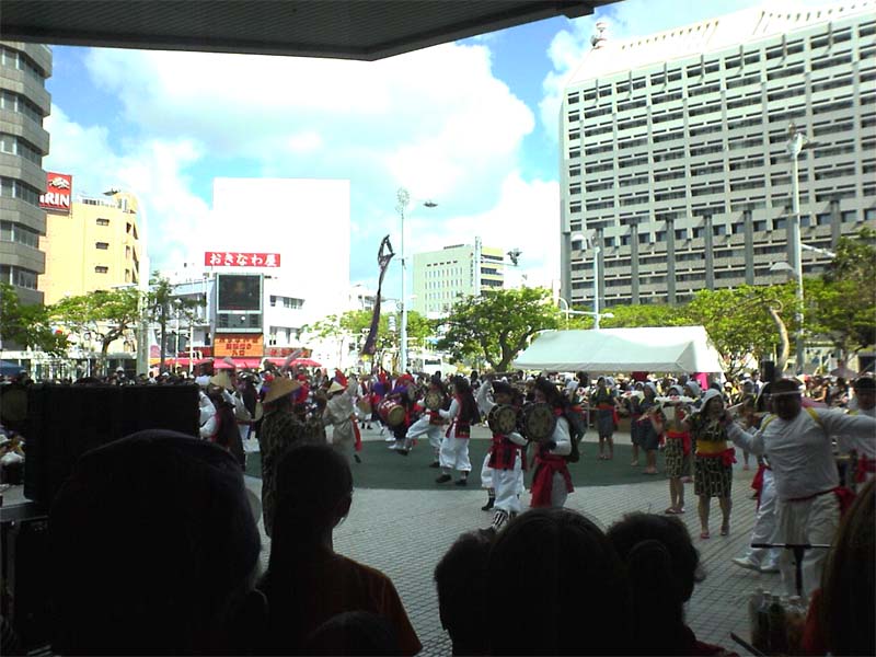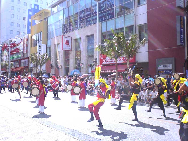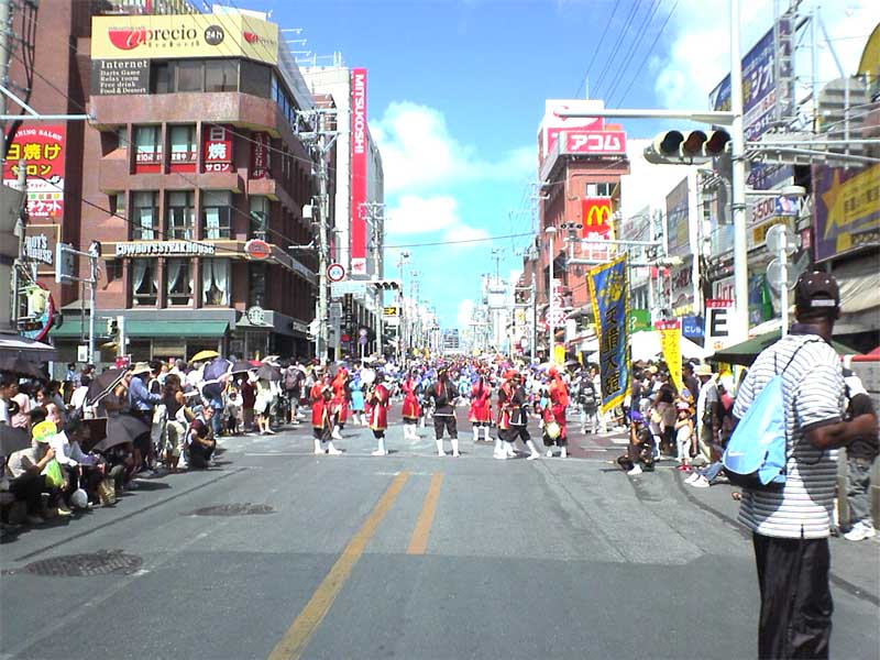 国際通りでは丁度、一万人のエイサーと言うお祭りが催されていました。
