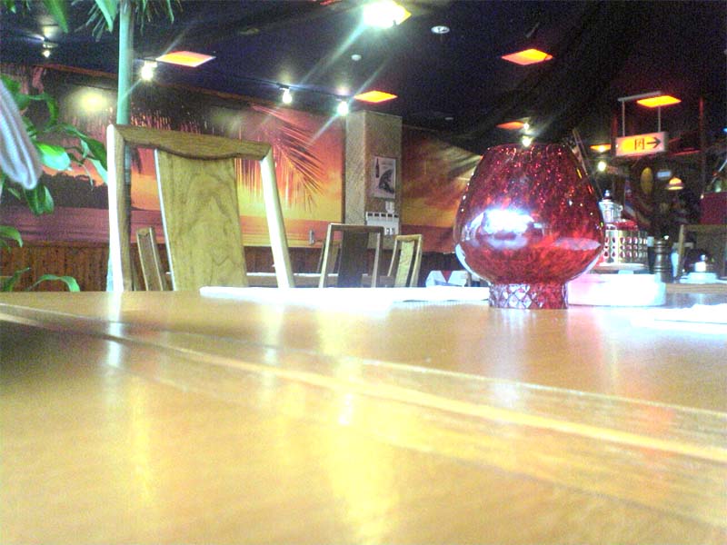 CMだとテーブルがずらーっと並んでいる前辺りにステージが有って、そこでフラダンスを踊っている映像が流れていました。