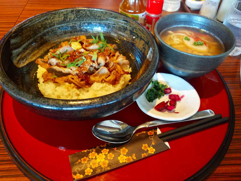 昼からステーキはちょっと贅沢なので、私は「牛カルビ丼&沖縄そば」、うちの奥さんは「特選松花堂」を頼みました。